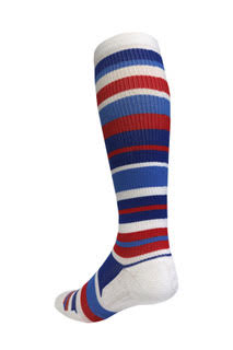 These socks are perfect to show SUPPORT for your COUNTRY and your LEGS at the same time. Red, white and blue striped SkinDocSocks are perfect for Memorial Day, Independence Day, Labor Day, Veterans Day, or any day you want to show your love for the USA! They provide: Freedom for your toes. Comfort for your feet. Support for your legs. Elevate your compression sock experience with SkinDocSocks!  Small/Medium is appropriate for shoe size 7-10, and Large/XL is appropriate for shoe size 10-13. There is an XS size for shoe size <7 (see sizing chart). The wide calf variant is best for patients with thicker calves - those that are approximately 16 inches or more in circumference, or if you just feel that other compression socks squeeze your calves too much! Most quality compression socks are $40 or more per pair, and we are offering this high quality product for only $25/pair.